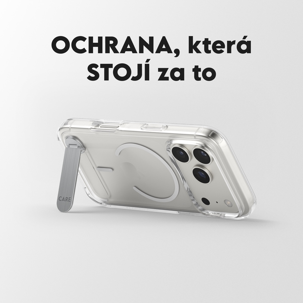Kryt CARE KickStand vyrobený z recyklovaného plastu nabízí fenomenální ochranu, je kompatibilní s MagSafe a zahrnuje naši jednoletou záruku proti žloutnutí – bez jakýchkoliv otázek. Tento tenký, lehký ochranný kryt s 360° stojánkem nabízí vše, co od krytu na telefon očekáváte. Obsahuje univerzální stojánek pro hands-free prohlížení, a to jak ve svislé, tak v horizontální poloze. Nyní můžete vy – nebo vaše děti – používat FaceTime, streamovat seriály a filmy a cvičit jógu, kdekoli a kdykoli… a to bez použití rukou.